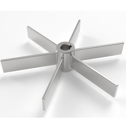 流動(dòng)狀態(tài):直葉開啟渦輪槳為徑流型槳葉。當(dāng)有擋板時(shí)可自槳葉為界形成上下兩個(gè)循環(huán)流。
